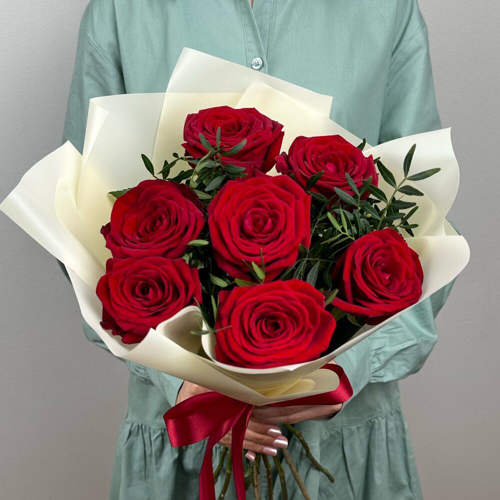 Букет из 9 красных роз с эвкалиптом – классика любви и нежности Багратионовск Калининградская область