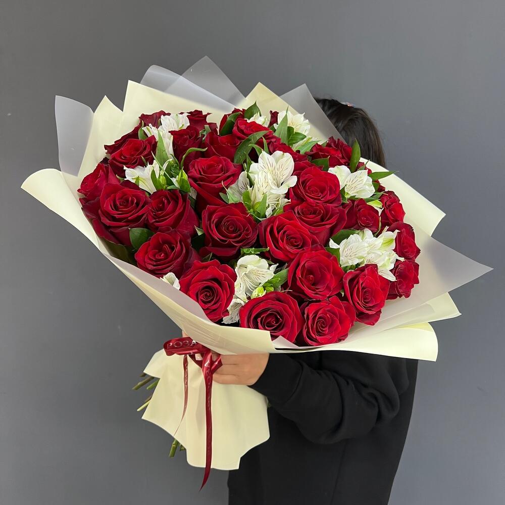 Волнующая композиция из алых роз и белоснежных альстромерий — воплощение совершенной любви. Идеальный выбор для романтического признания или годовщины отношений. Заказать букет цветов с доставкой в Багратионовске.