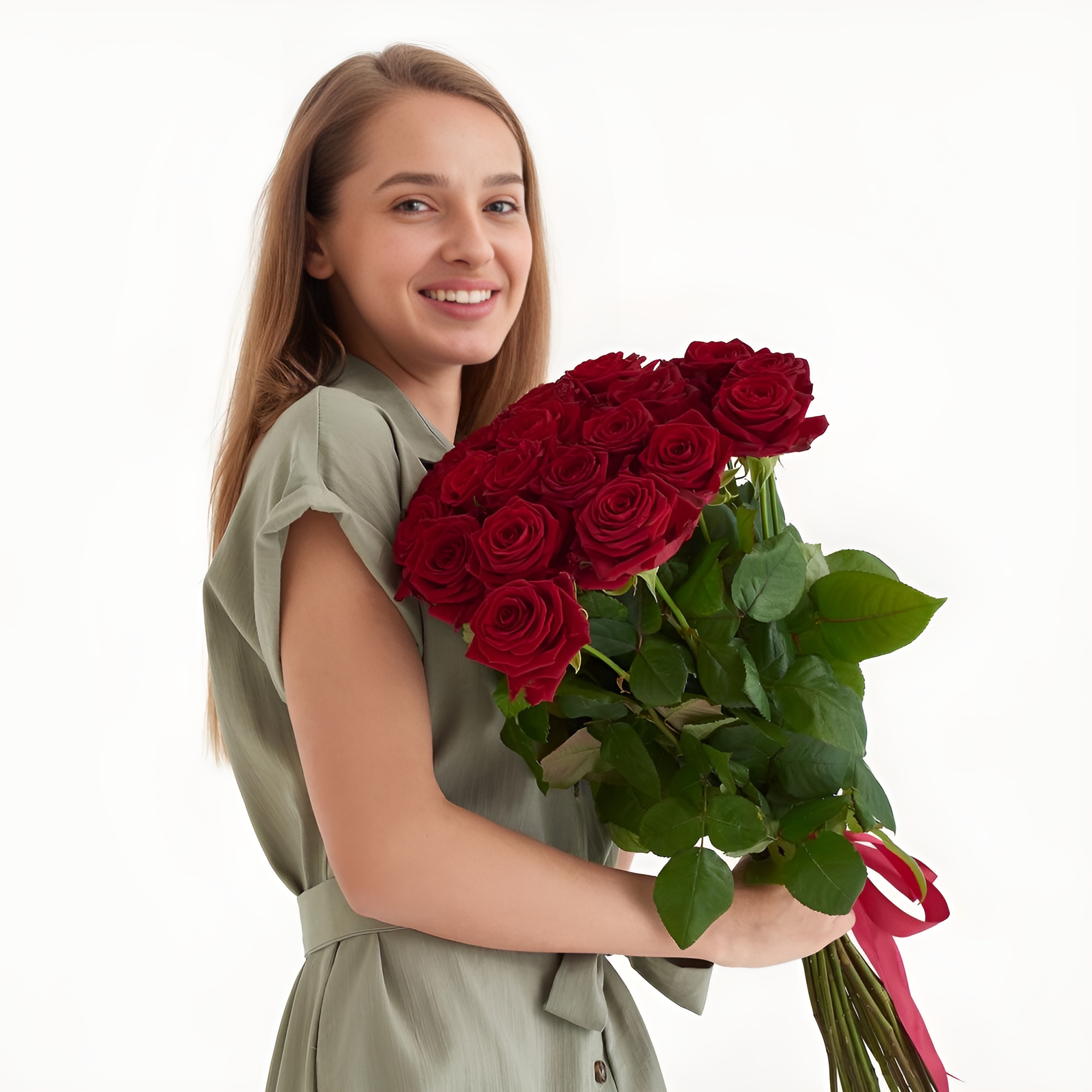 –Роскошный букет из 21 красной розы – воплощение искренних чувств