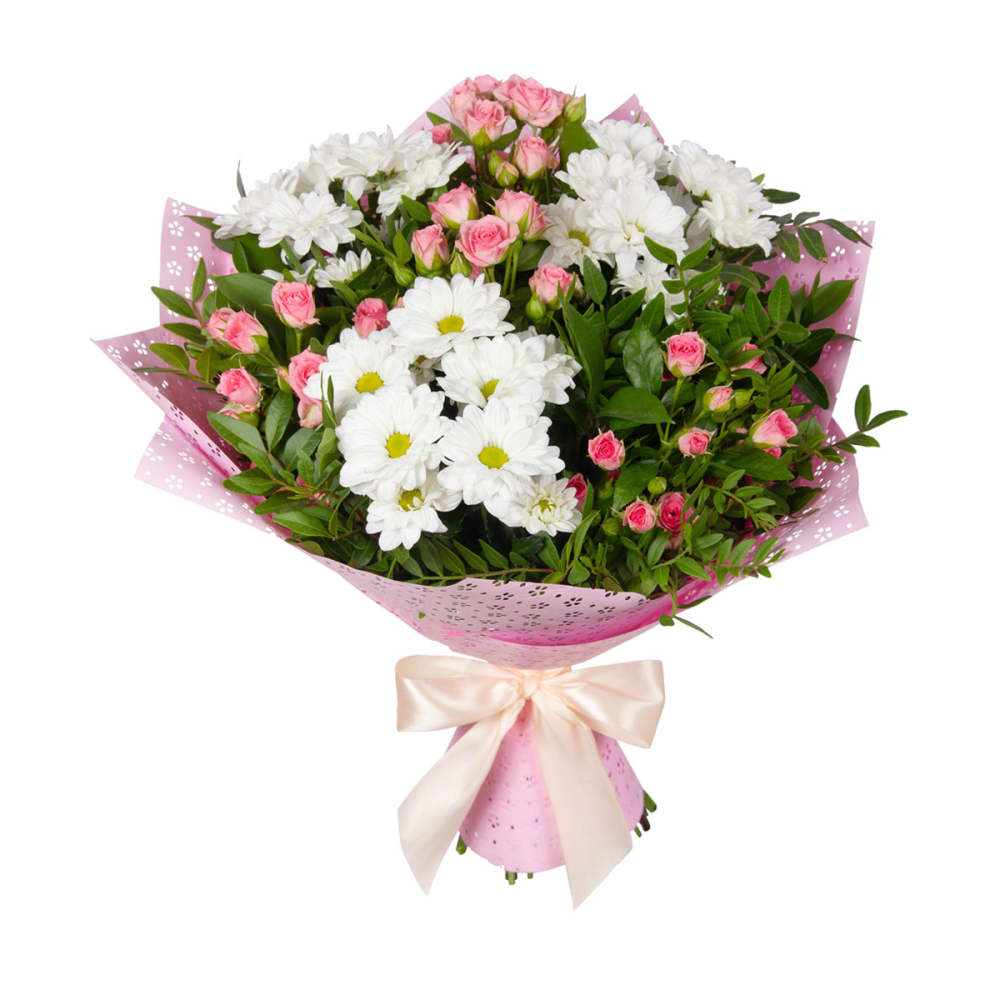 Букет «Волшебный сад» – гармония кустовых роз и белоснежных хризантем Багратионовск Калининградская область