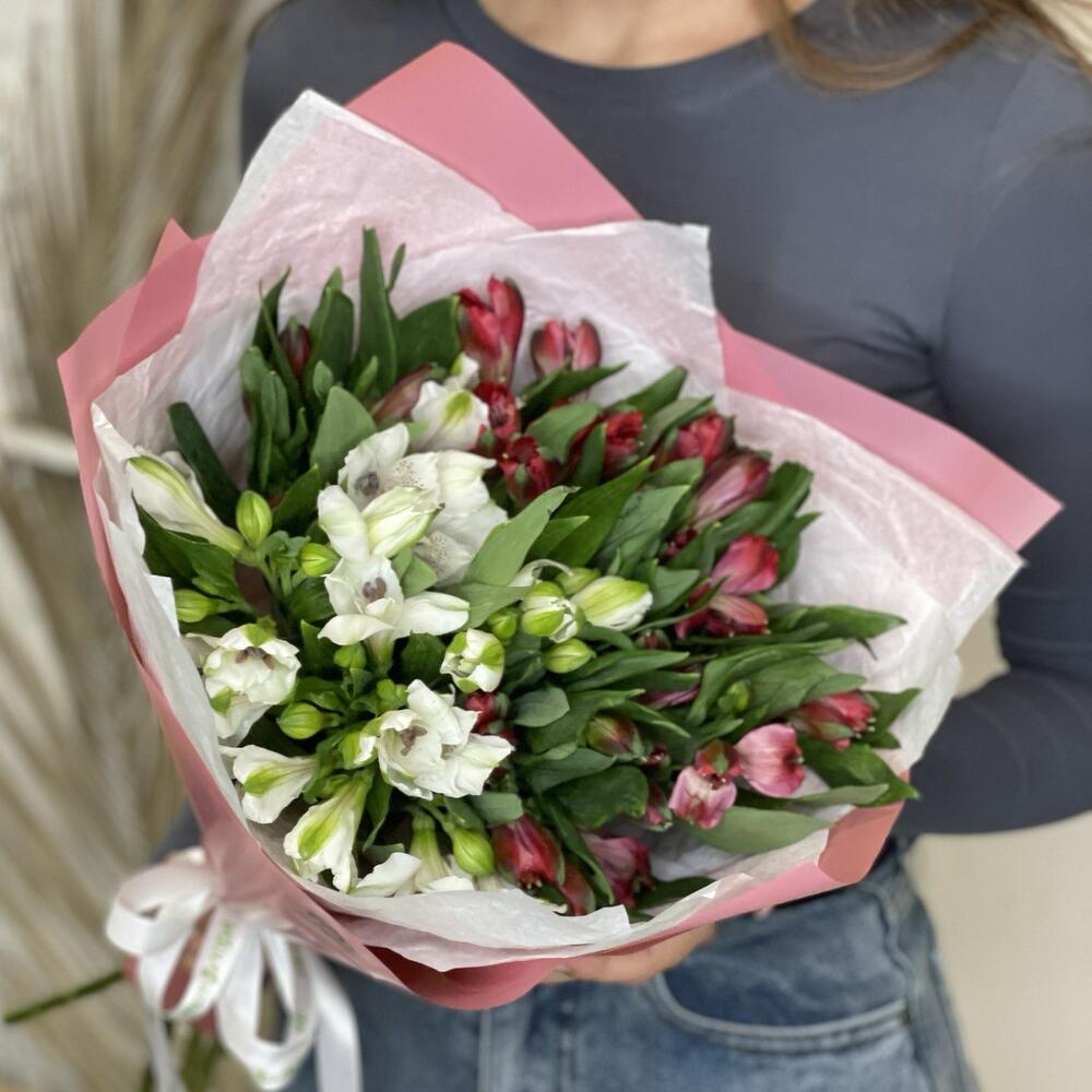 Яркий букет «Люблю» сочетает красные и белоснежные альстромерии — символ гармонии страсти и чистоты чувств. Эти удивительные цветы с узорчатыми лепестками расскажут о вашей любви лучше любых слов. Идеальный выбор для признания, годовщины или романтического сюрприза. Доставка альстромерий в Багратионовске.