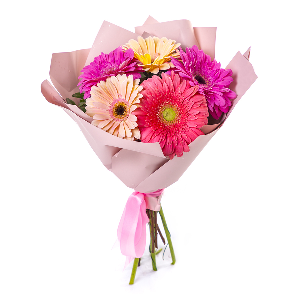 Жизнерадостная композиция из 5 свежих гербер разных цветов — воплощение летнего настроения. Идеальный выбор для подарка оптимистичному человеку. Магазин цветов Багратионовск.