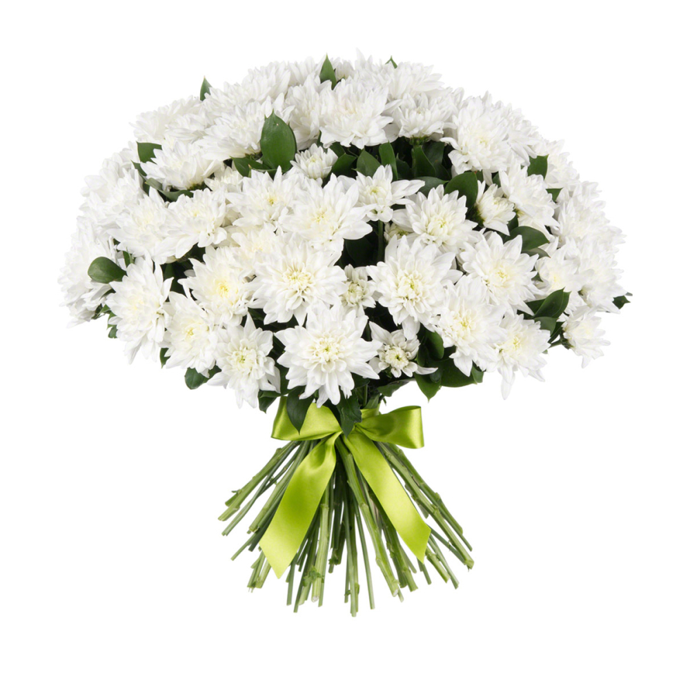 Нежный букет из белоснежных хризантем «Белый ангел» воплощает чистоту и совершенство.