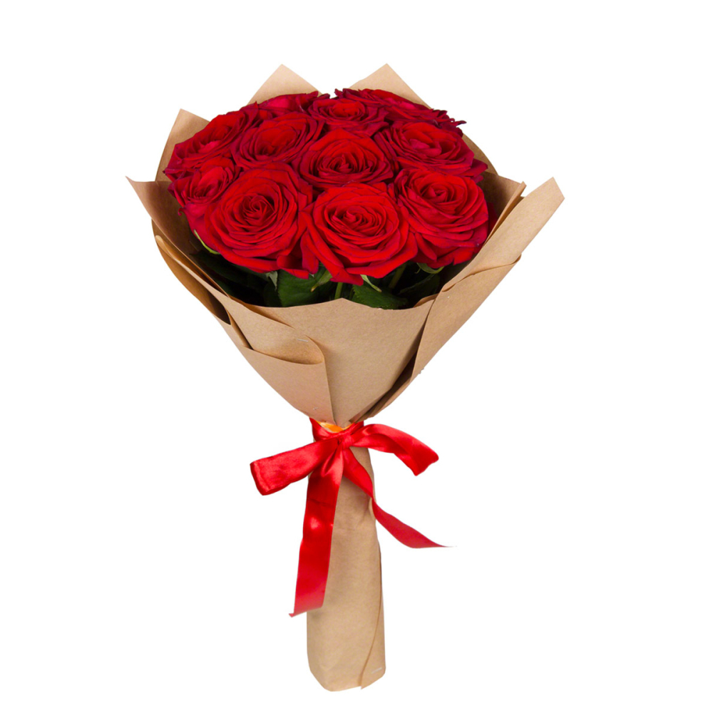 Подарите страсть и нежность с элегантным букетом из красных роз в стильной крафтовой упаковке.